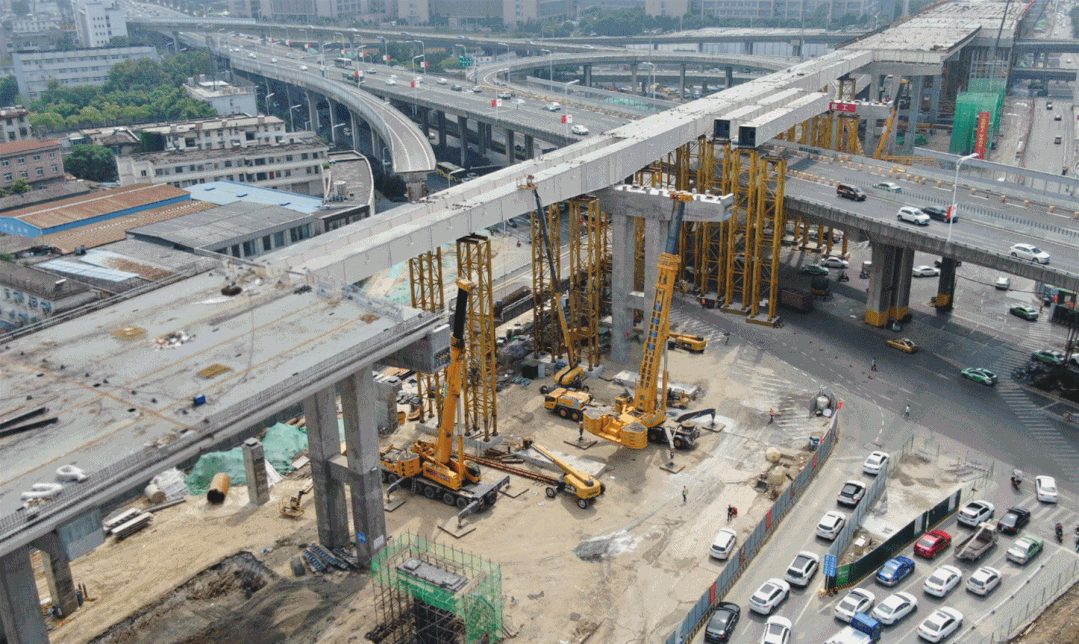 此工程需要在保障既有高架橋通行的前提下進行橋梁的高空作業,顧名思義安全保障是最大的難點之一。經過專家多輪論證后,施工單位最終制定了嚴謹周密的施工方案和安全保障方案,并決定采用安全系數最有保障的“徐工起重機”進行施工。