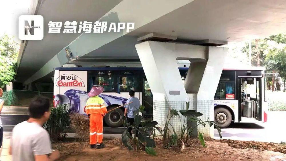 15日上午10時許,福州一輛公交車被卡在五里亭高架橋下,幸好車輛上并無載客,無人受傷。
